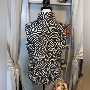 Liz Claiborne size Medium Black White Zebra Print Snap Button GUC Puffer Vest