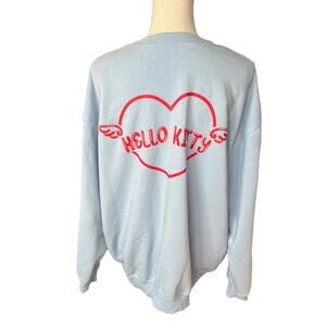 Hello Kitty Blue Crew Neck Sweatshirt Red heart Accents Sanrio casual valentine