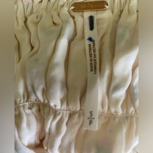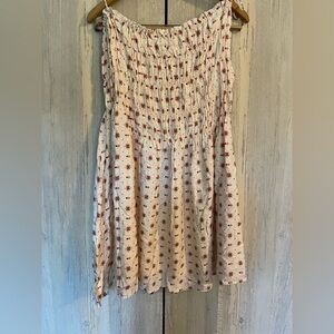 Free People Clementina Ivory Combo Mini Dress Asymmetrical printed mini dress with ruched smocked detailing at the top. Retail $128