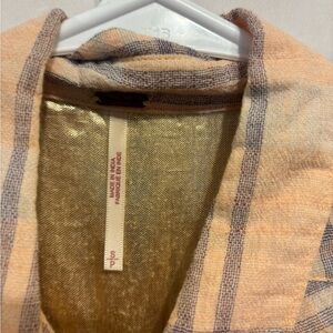 Free People Cropped Cutie Plaid Button Down Shirt Women’s Size Small – Light Orange Neutral