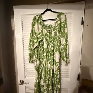 Ava & Viv Green and White Floral Long Sleeve Dress