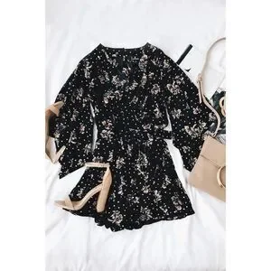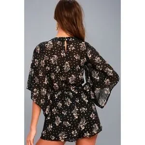 Lulu’s | Midnight Voyage Black Floral Print Romper