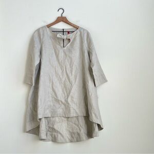 IC By Connie K Linen Key Hole Bow Tie Tunic Top 100% Linen Pockets Large USA