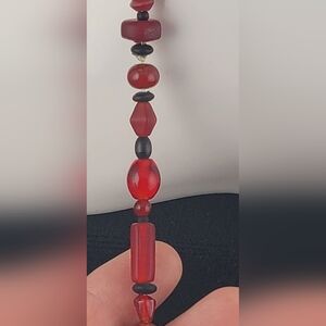 Vintage Red Glass & Wooden Beaded Necklace Single Stand-Stretchy
