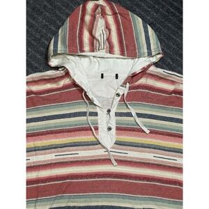 LRL Lauren Jeans Co Sante Fe Stripe Hoodie Tee 3/4 Sleeve Women L Aztec Western
