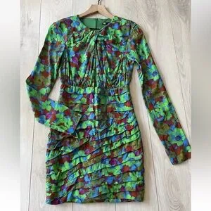 Zara Multicolor Floral Long Sleeve mini body-con Dress XS