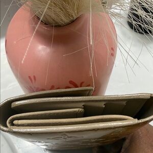 Call outs- Discolorations as shown in pictures, stains on the inside and color transfer at the back of the wallet.