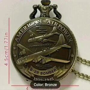 Bronze toned U.S. Airforce quartz pocket watch with a chain.