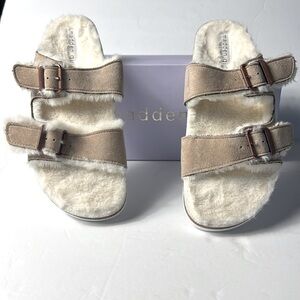 MADDEN GIRL Butterfly Taupe Furry Buckle Straps Slide Sandals Women's 11M NEW