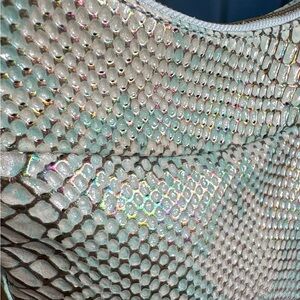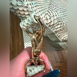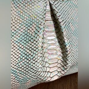 The Creamy Opal Background is Accented with a Touch of Blue/Green. The Snake Embossed Leather is Highlighted with Bronze and Gold that Shimmers in the Sunlight with a Vibrant Rainbow of Colors!