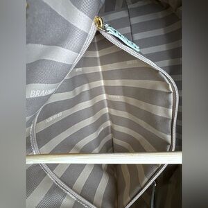 Interior: Brahmin Signature Lining With Two Utility Pockets With Zippered Pocket On Back Wall. Key Clip.