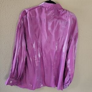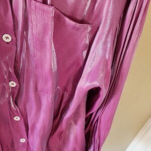 Zanzea Collection Shiny Pink Button-Up Shirt. One chest pocket in the front with white buttons. 100% Polyester. New without tags.