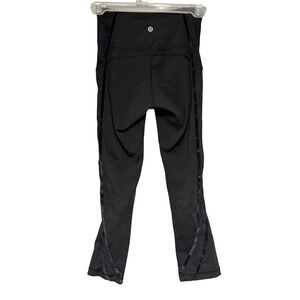 Lululemon Black Velvet Detail Mesh Floral Side Panel Leggings Cropped Size 2