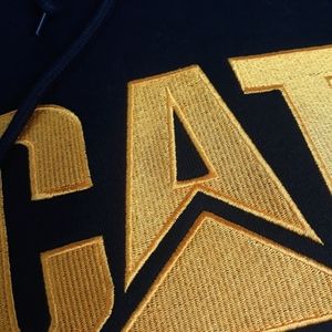 CAT Caterpillar Black & Gold Yellow Men's Hoodie, Sz M NWT