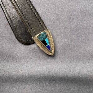 Vintage Navajo Yazzie Sterling silver turquoise & lapis belt caballo leather