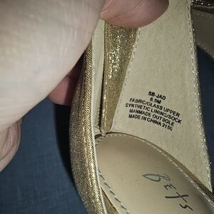 Shimmering gold heels with studded details. Chic ankle strap design. Perfect for a night out. slight spot on back of one heel as pictured.