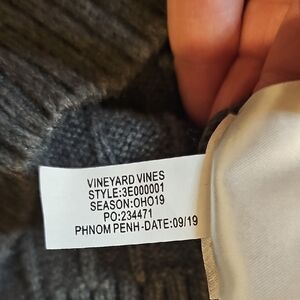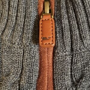 Cozy Vineyard Vines charcoal grey sweater with a stylish brown zipper. Ideal for layering.