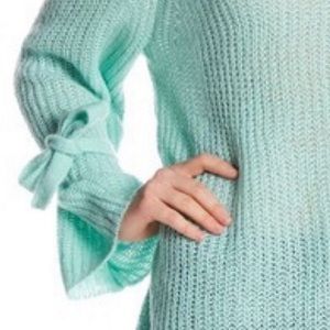 Project Naadam Sweater boatneck knit bell long sleeves mint green women’s size M