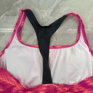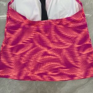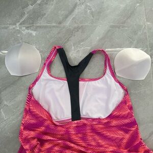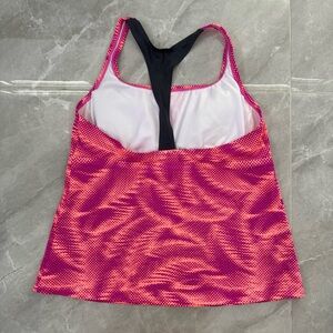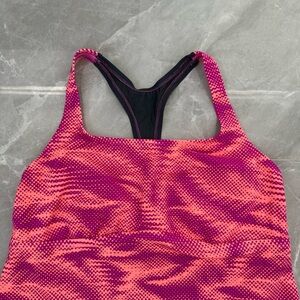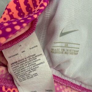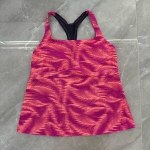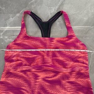 Good condition - Women’s Nike Patterned Racerback Workout Athletic Padded Tank Top Plus Size. Has removable pads. Colors: purple, pink, coral, and gray. Size: 1X.