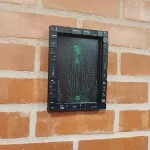 Lady Of Guadalupe Retro ASCII art Print In Custom Keyboard Frame By Neon Nicho