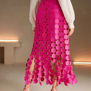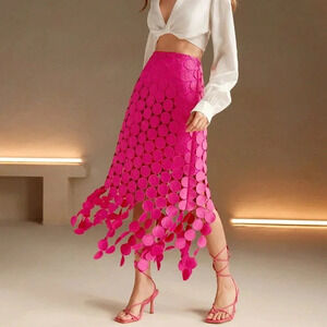 Pink Casual Women's Laser Cut Multi Circle Double Layered Skirt