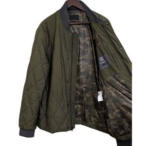 Banana Republic Quilted Bomber Jacket XL Olive Green Water Resistant Camo Lined