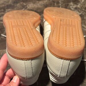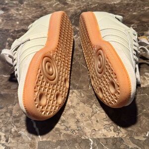 Classic Adidas Samba sneakers beige accents. Ideal for everyday style, like new, used in good condition just a little dirty when I sell them all clean them! It’s 8 but maybe half number more bigger that’s why I sell them!