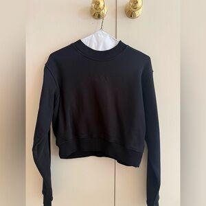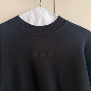 Stylish black sweatshirt with Fiorucci logo. Cropped design for modern flair.