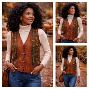 Vintage Lizwear Embroidered Floral Vest - Artisan Boho Statement Piece