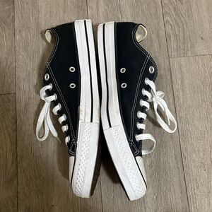 Classic Converse sneakers. Black canvas with white laces and soles. Timeless style.