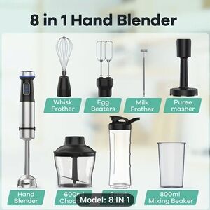Upgrade your kitchen with this versatile 8-in-1 silver hand blender set. Perfect for smoothies, soups, and more. Sleek design complements any kitchen decor.