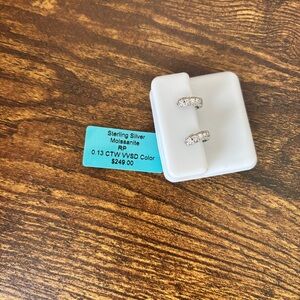 This listing is for a gorgeous pair of sterling silver and Moissanite diamond earrings! These hoops, also called “huggies” are meant to hug your ear for a smooth and sparkling look! These earrings are certified moissanite and are 0.13 CTW VVSD color. They retail for $249!