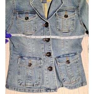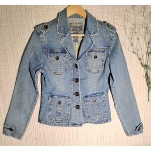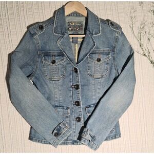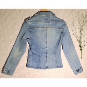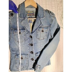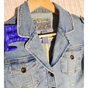 Y2k STAR Light Wash Denim Jacket Women's Button Front Military Style Jean Coat