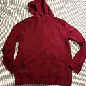 Reebok hoodie in maroon with black zipper. Comfortable and stylish design.