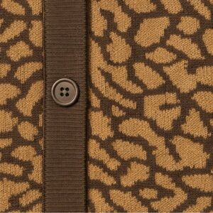 Stand out in this Nike Women’s Elephant Print Cardigan Sweater, a rare and stylish statement piece in women’s size 2X. Designed with Nike’s iconic elephant print in rich brown tones, this sweater features a classic button-front cardigan silhouette with ribbed trim at the collar, cuffs, and hem for a polished finish.