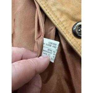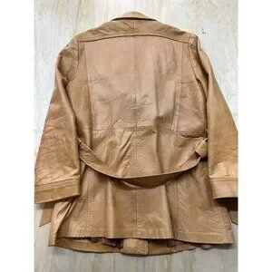 The VTG Sheep Mates NY Paris Leather Coat Jacket is a stylish and retro-inspired piece perfect for women looking to make a statement. Made of high-quality leather with a luxurious shearling fabric lining, this coat features a belted design for a flattering fit. The brown color and 70's retro theme add a touch of groovy style to any outfit, making it a versatile and fashionable wardrobe staple for those who love vintage fashion.
