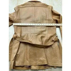 VTG Sheep Mates NY Paris Leather Coat Jacket Womens M Belted 70’s Retro Groovy