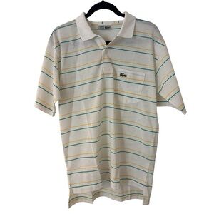 Vintage white, yellow and blue striped Chemise Lacoste polo shirt. Size 3.