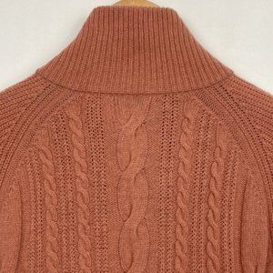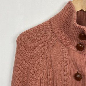 J.Crew S Salmon Cardigan Cable Knit Faux Leather Buttons Lambs Wool