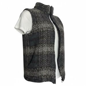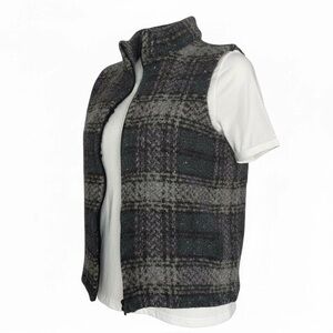 John Brannigan Weavers Gray Plaid Wool Zip Up Vest Size X-Large Made In Ireland