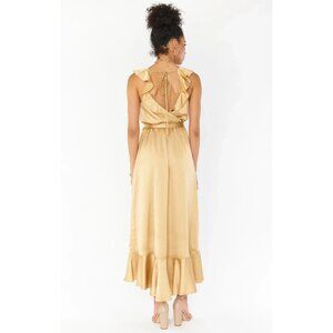 Show Me Your Mumu Womens Samantha Ruffle Wrap Dress Gold Luxe Satin Size Large