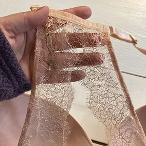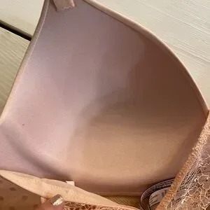 Gorgeous light pink no underwire bralette type bra with racer back and lace. So cute ☺️ minor wear as seen in pics. Please check out all pics and comment below with any questions. 34D
