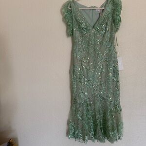 MAC DUGGAL Green Puff Sleeve V Neck Floral Embellished Dress Size 8 Original retail price $598 New with tags from the smoke-free home. Mac Duggal Hand-embellished mesh overlay; 100% polyester lining Fully lined V-Neck Mesh Embellished Puff Sleeves Beautiful floral embellishments Concealed back zipper Approx. 48" from top of shoulder to bottom hem Available in Mint Green Style #68266 Cocktail, wedding guest, semi formal, homecoming, charity event, fancy dinner party, mother of the bride groom, embellished, beautiful, gorgeous, stunning, feminine, romantic, designer, military ball, rehearsal dinner