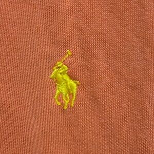 Vibrant orange fleece hoodie with Polo logo. Comfortable and stylish.