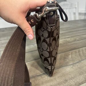 Coach Brown Fabric Logo Print Mini Crossbody Shoulder Bag