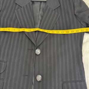 Elegant Dior blazer with subtle pinstripes. Features classic lapels and button closure. Perfect for professional settings.in excellent pre own ckmdiron . Size tag is missing but im a size M and it fits great as a over size blazer . measurements are provided.in the pictures