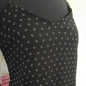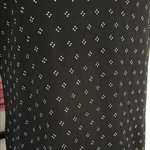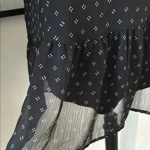 this is black. the outer layer is sheer and there is a layer underneath. it’s all black with a mini white diamond detail. it has a ruffled flowy bottom. it is a size small.
