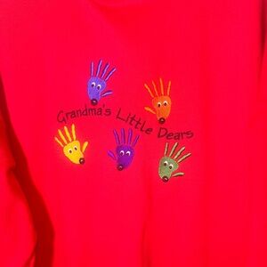 Stay cozy and stylish with this Vintage bright red crewneck sweater featuring a unique handprint design. Perfect for adding a pop of color to your casual wardrobe. In excellent condition 🔥