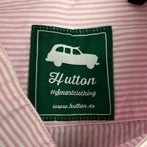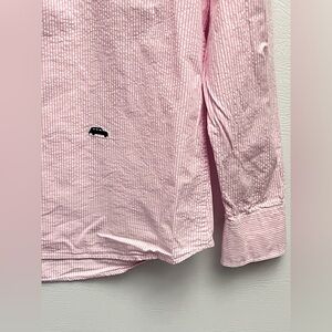 Hutton Smart Clothing Pink Striped Cotton Button Up Shirt w Car Logo Large