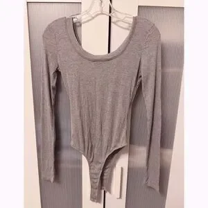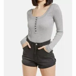 Lulus Simply the Best Heather Grey Long Sleeve Button-Front Bodysuit Size M